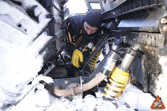 опытный ездун.. неее, ездец.. ну, короче ttoleg не справлялся с управлением этой бешеной коровы (в будущем кине это будет видно).. после того, как commander съехав с накатанной тропы, зарылся в снего-песочной массе и пытался выкарабкаться оттуда, мы увидели, что передний привод не работает.. ttoleg потыкав носом где-то в районе глушителя, объявил диагноз - нижняя граната левого переднего колеса в хлам!..