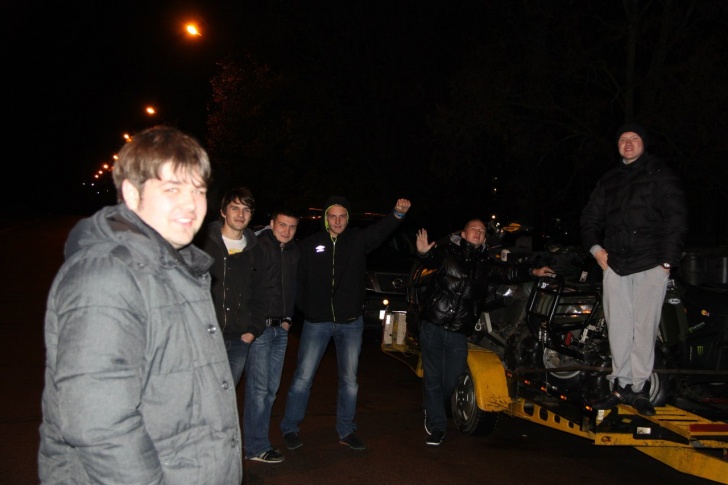 Когда ехали обратно сразу возле Шостки попали в яму, на задней покрышке вылезла большая грыжа, по этому домой ехали спокойно, потому что запаски нету))