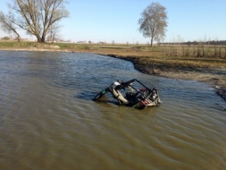 Оказалось , что там сразу обрыв. Плюхнулся по горло. Еле успел ремни отстегнуть.