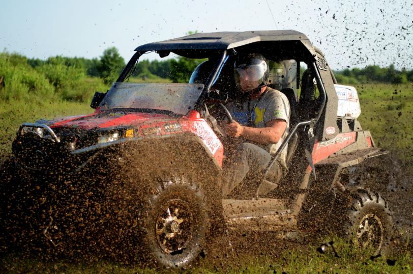 С одной стороны ехать в таких соревнованиях, как "Украина трофи" на неподготовленном квадре - самоубийство или убийство техники и сход.. казалось бы, ну зачем?.. здравый смысл подсказывает - "нэ тарапыся!".. но с другой стороны, я понимаю, что такое "ну прет меня!" и "хочется, хуже чем болит!".. я на 4-м этапе "atv.адреналин", после ознакомительного круга вообще отказывался ехать в гонку.. ну куда в такую грязюку без лебеды, на кроссовой резине, на узкую квадроциклетную трассу на моей rzr 900 xp с ее выворотом?.. да еще и мой однокашник (серега молочный), по старой дружбе поставил меня на старт последним!.. :mad: